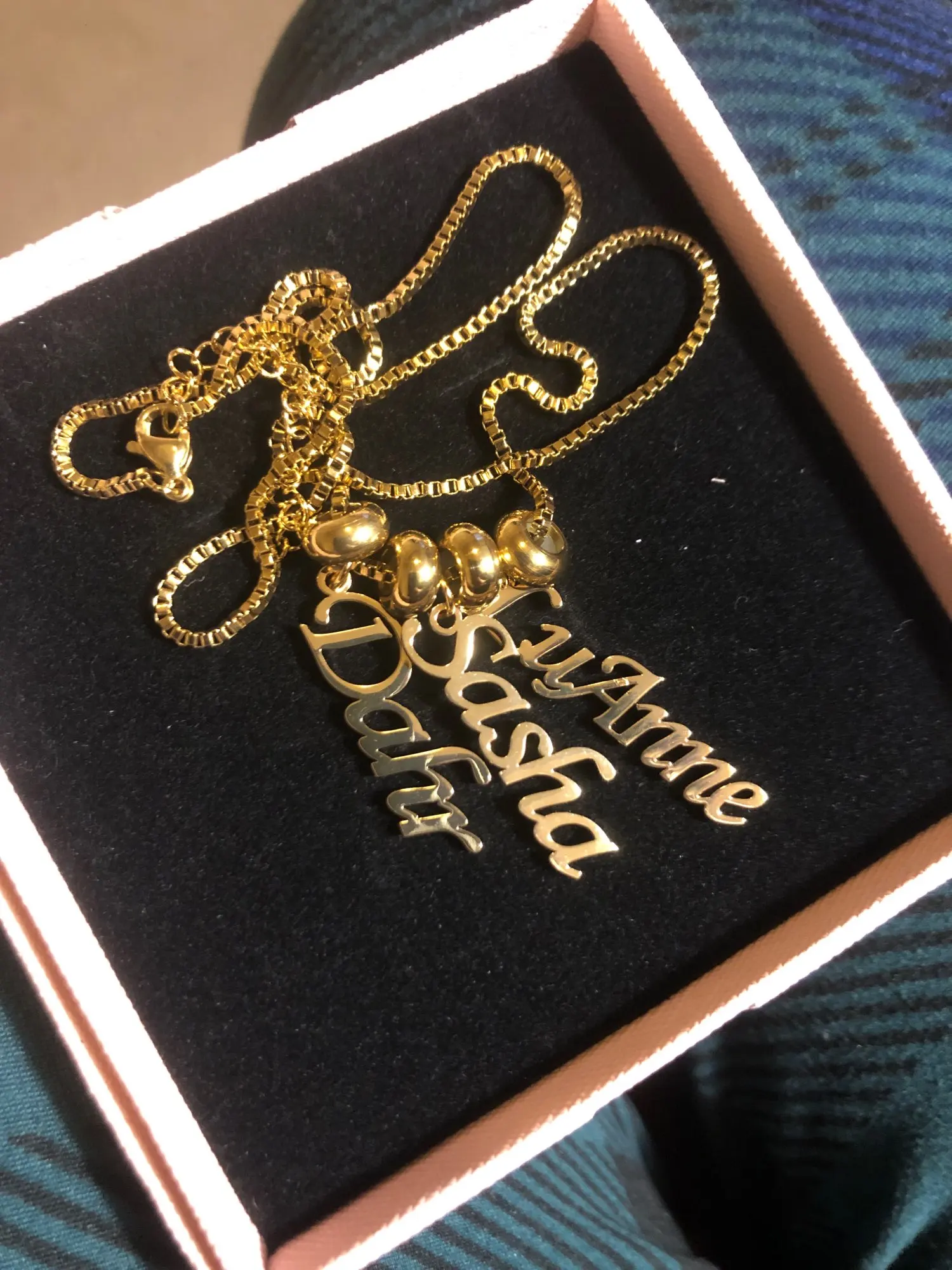 Celebrate the names that matter most with this beautifully crafted script necklace. The flowing, elegant design turns each name into a delicate statement, making it a meaningful keepsake or a cherished gift. A timeless piece that carries your loved ones close to your heart.